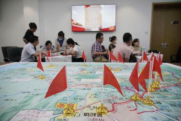 在沙盤推演環(huán)節(jié)中,沙盤課程共包含紅軍長(zhǎng)征過程中的“血戰(zhàn)湘江”“四渡赤水”“飛奪滬定橋”“巧渡金沙江”“突破臘子口”等重大事件,通過沙盤畫面和任務(wù)設(shè)定實(shí)現(xiàn)情景重現(xiàn)。