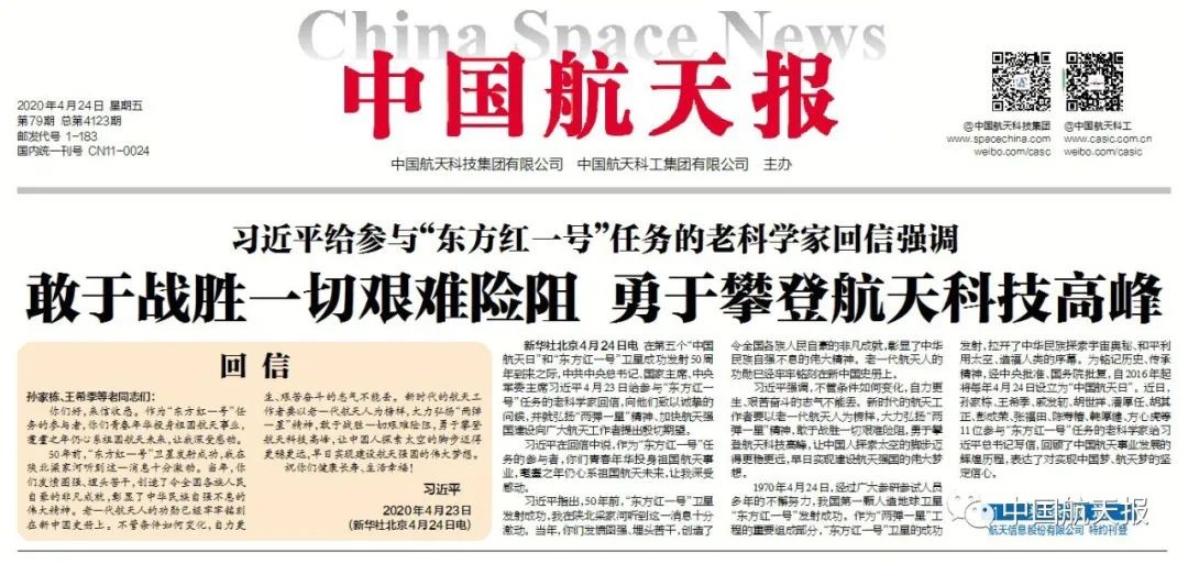 07|東方紅一號衛(wèi)星成功發(fā)射50周年之際,習(xí)近平總書記給參與“東方紅一號”任務(wù)的老科學(xué)家回信