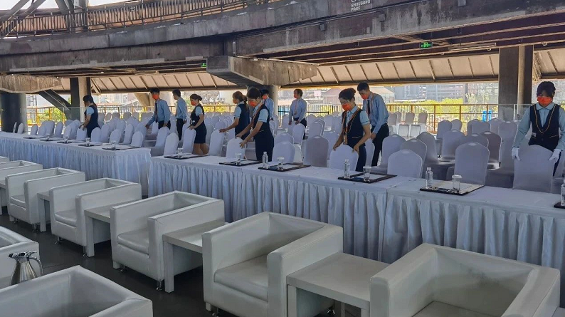 服貿(mào)會級別高,對會服人員要求也高。從身高形象到指甲長短、舉止談吐都提出了明確要求,需要在前期面試時嚴格把關(guān)。中科公司迅速組織項目團隊參與到緊張的籌備工作中。8月23日~9月2日,項目負責團隊參與服貿(mào)會準備會議10余場,對會議服務(wù)團隊進行了超過600人次的面試、背景調(diào)查、疫苗接種核查及多輪核酸檢測等工作,每名會服人員的服務(wù)培訓累計均超過70小時。