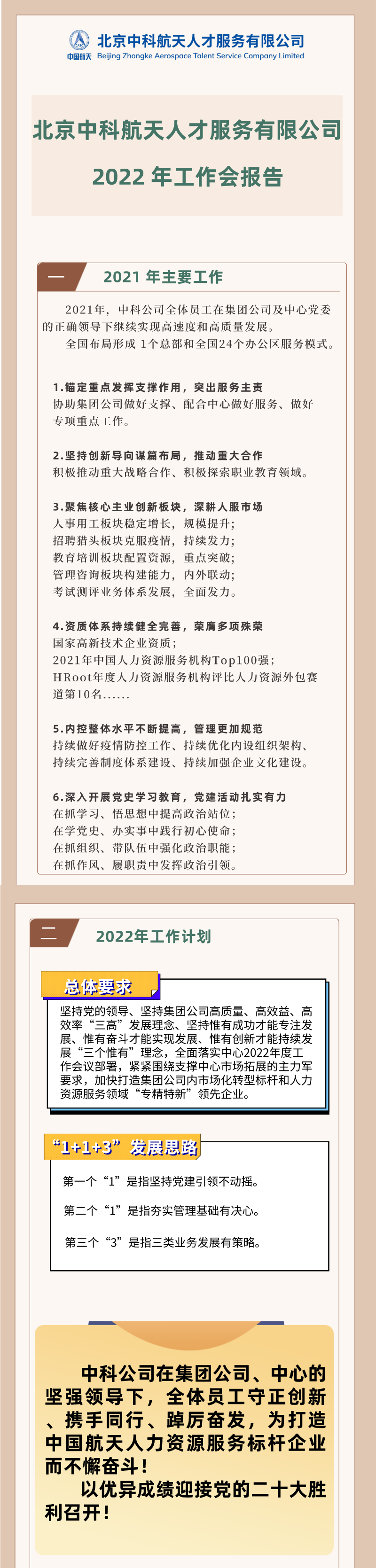 北京中科航天人才服務有限公司2022年工作會報告