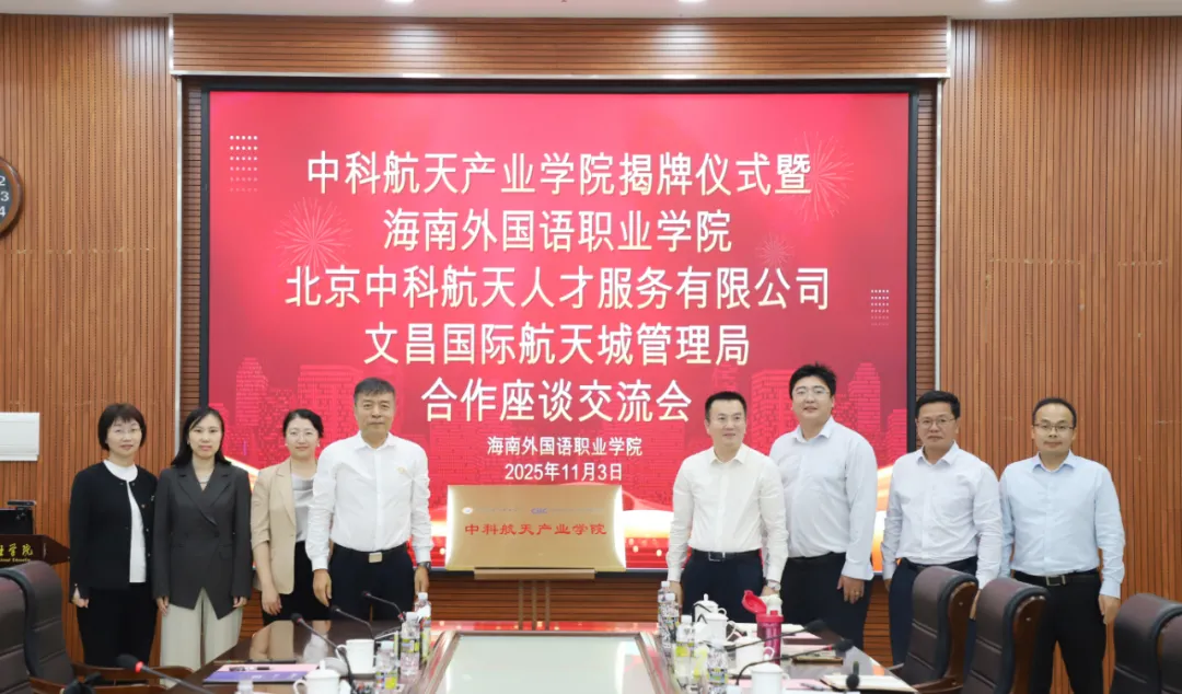 11月3日,中科航天產(chǎn)業(yè)學(xué)院揭牌儀式在海南省文昌市舉行,同期還舉辦了海南外國語職業(yè)學(xué)院與北京中科航天人才服務(wù)有限公司、文昌國際航天城管理局的合作座談交流會(huì),標(biāo)志著政校企深度融合、共育航天產(chǎn)業(yè)人才的合作模式邁出關(guān)鍵一步。