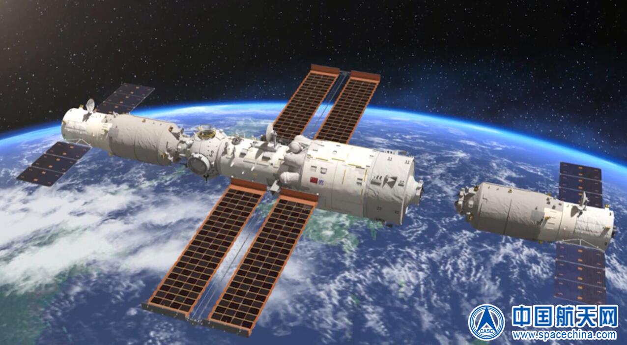 天舟四號(hào)與空間站組合體交會(huì)對(duì)接演示圖(五院 提供)