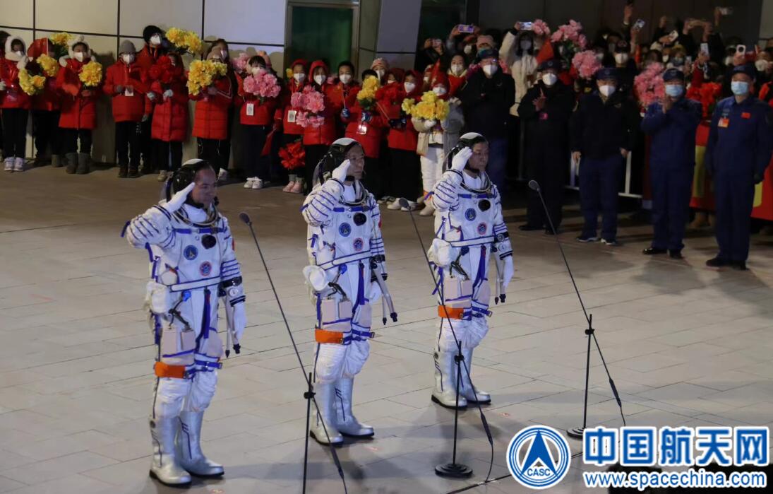 航天員費(fèi)俊龍(中)、鄧清明(右)、張陸(左)出征(張曉寧 攝)